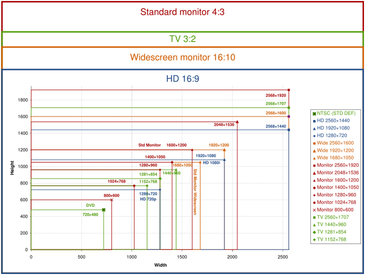 - อัตราส่วน 4:3 ภาพจะมีความกว้าง 3 ส่วนและยาว 4 ส่วน ภาพจะมีลักษณะเป็นสี่เหลี่ยมผืนผ้า