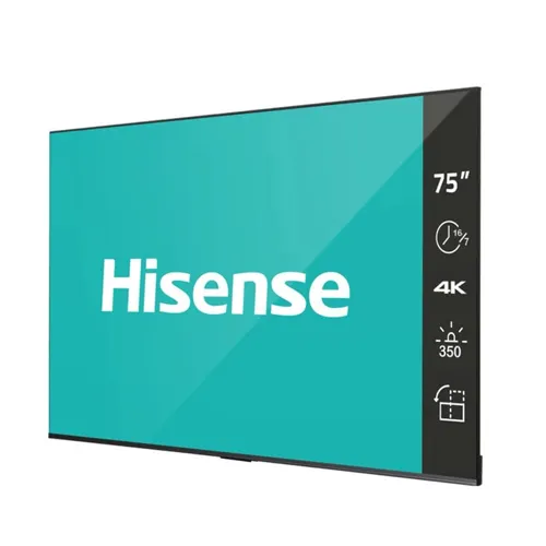 The professional-grade HISENSE 75DP30FE is a 75-inch Digital Signage Display with stunning 4K UHD (3840 x 2160) resolution. It is designed for continuous operation, capable of displaying content for up to 16 hours a day.