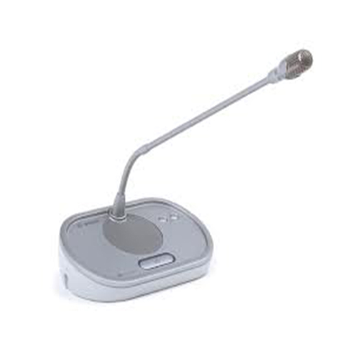 • The Discussion Unit with fixed Microphone enables participants to speak, register a request-to-speak and listen to the speaker.