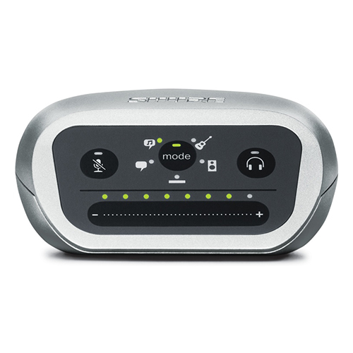 • Front panel touch controls for mode selection, headphone volume, microphone gain, and mute