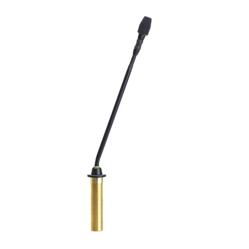 The MX410 surface mount version is a gooseneck microphone with a Bi-Color LED as status display. It has a 10″ gooseneck and is suitable for boardrooms and other sites where aesthetics are important.