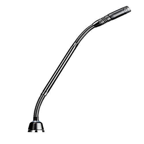 The MX410 surface mount version is a gooseneck microphone with a Bi-Color LED as status display. It has a 10″ gooseneck and is suitable for boardrooms and other sites where aesthetics are important.