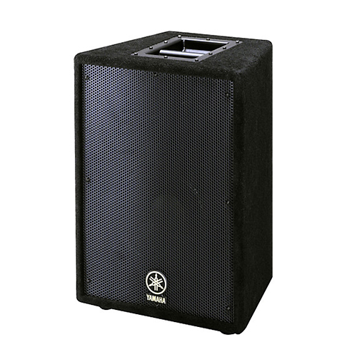 The Yamaha A12 speaker from their A Series is designed for live PA system use. It is a 2-way speaker featuring bass reflex, trapezoidal cab design, heavy grille, recessed handles, and black carpet covering.